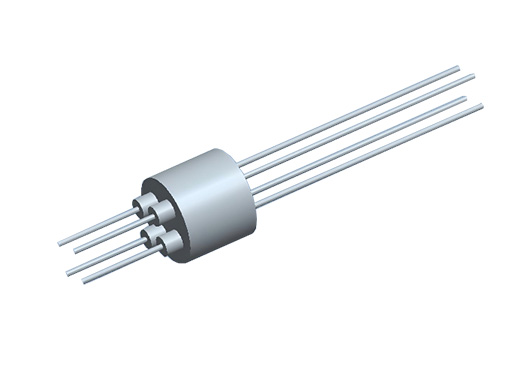低功率饋通可選1/2/4/8針,材質為不銹鋼和陶瓷,鉬導體直徑0.8mm,電壓為500VDC,最大電流為8A;銅導體電極直徑為1.3mm,最高電壓為2000VDC,最大電流為25A。
